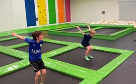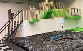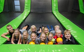 CityJump Esbjeg´s new trampolinpark. We guarentee a fun and healty experiense. We offer more than 1500 m2. Trampolines on the floor and wall, and activities like. Dunking Basketball, Dodgeball, Inflatable Parkour Course, Ninja Warrior obstacles, Walltramp and CityJumps Climbing Wall.