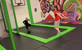 Jumping on trampolines is a great way to get some exercise. Jumping on trampolines strengthens the motor skills and fitness.